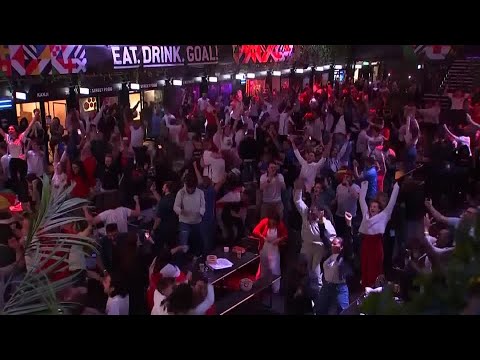 Soccer fans in London celebrate after England beat Denmark in the Euro 2020 semi-final.