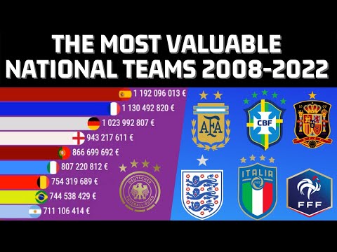 Top football national teams by market value of players according to transfermarkt. Bar chart race with the most valuable teams between 2008 and 2021.