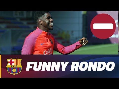 ¿Es Samuel Umtiti un muro? El central francés es el principal protagonista de un divertido rondo entre los jugadores del primer equipo azulgrana.